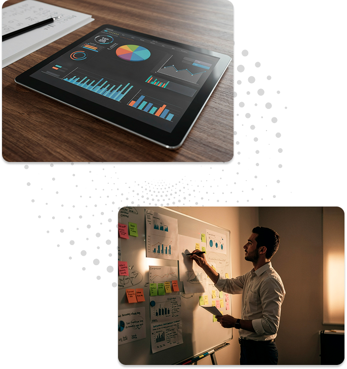 نحن وكالة تسويق إلكتروني تعمل من قلب السوق وبنبضه. ندمج الإبداع مع التحليل، ونبني استراتيجيات رقمية على أساس واضح: أن كل علامة تجارية تملك صوتًا… ومهمتنا أن نُسمِعه.